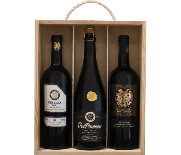 Ele é constituído pelo nosso espumante branco reserva extra bruto, vinho DOC Douro Reserva tinto e pelo DOC Douro Reserva Branco com uma elegante caixa de madeira.